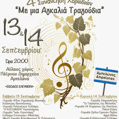 Αύριο Σάββατο 13 Σεπτεμβρίου 2025 και ώρα 20:00 ξεκινά η διήμερη 4η Συνάντηση Χορωδιών με τίτλο ΄΄ Με μια Αγκαλιά