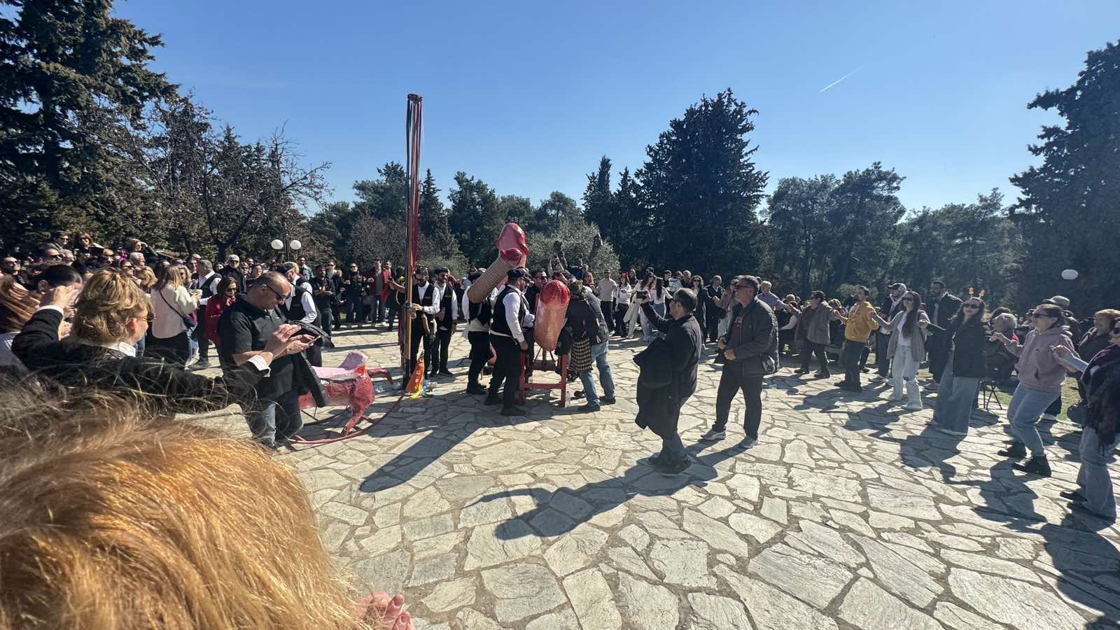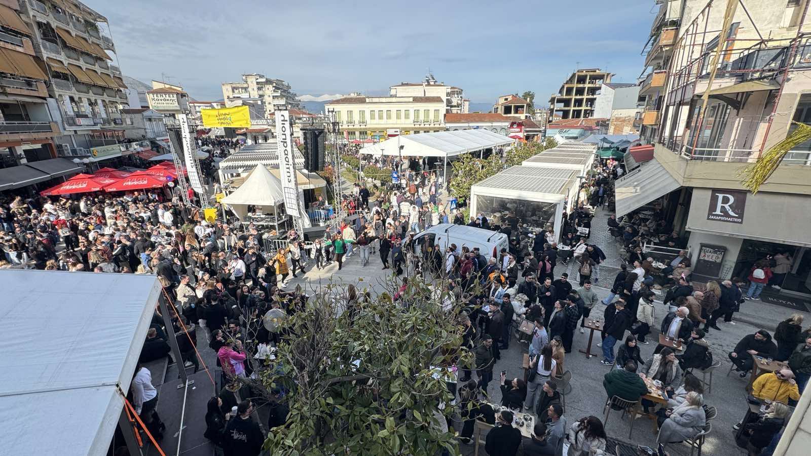 Ενώ το γλέντι με τραγούδια και πειράγματα συνεχίζεται αυτή την ώρα στην πλατεία αγοράς στον Τύρναβο.