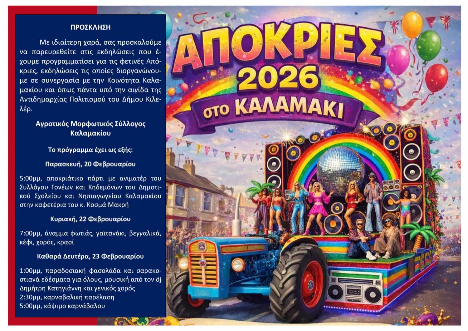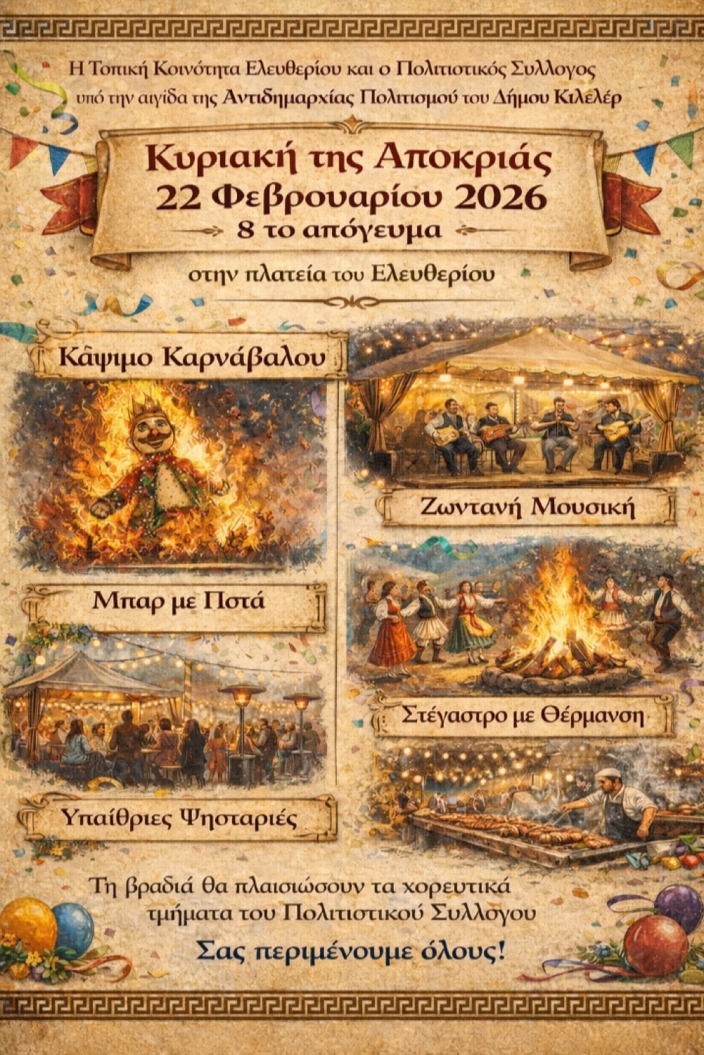 Σε αποκριάτικους ρυθμούς κινείται αυτές τις μέρες ο Δήμος Κιλελέρ. εκδηλώσεις ετοιμάζονται για το τετραήμερο 20,21,22 και 23 Φεβρουαρίου. Τσικνίσματα, εδέσματα, παραδοσιακή φασολάδα, φακές και ντόπιο κρασί θα προσφερθούν στους επισκέπτες. Μουσική και ψυχαγωγητές θα εκτοξεύσουν την αποκριάτικη διάθεση. Οι Απόκριες φέτος έχουν προορισμό τον Δήμο Κιλελέρ όπου το κέφι ανάβει και η γιορτή ξεκινά. Μικροί και μεγάλοι ετοιμάζονται για μοναδικές αποκριάτικες εκδηλώσεις σε κάθε κοινότητα του Δήμου, με μουσική, χορό, παραδοσιακά δρώμενα και ατελείωτη διασκέδαση!