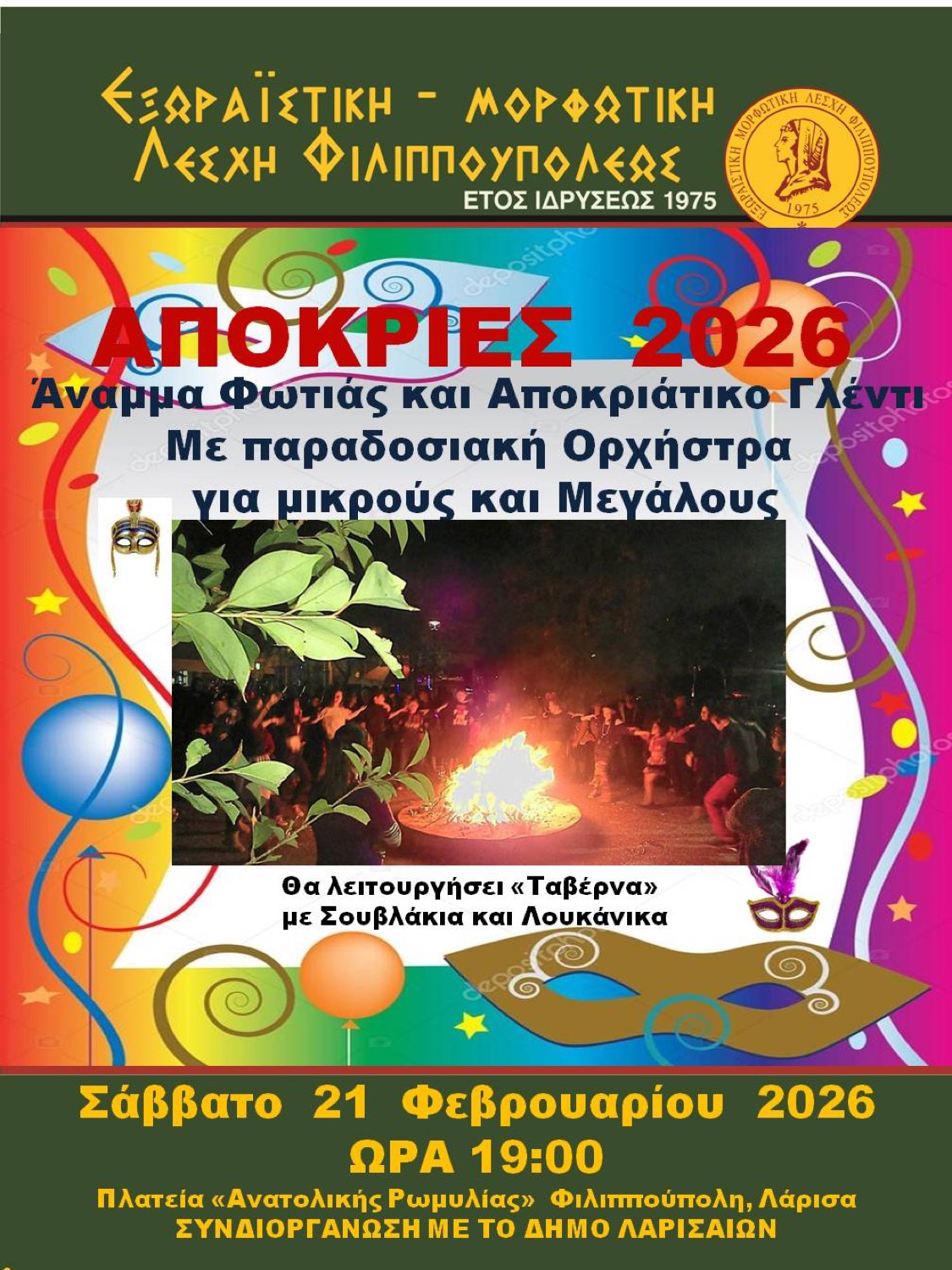 Η ΕΜΛ Φιλιππούπολης συνεχίζοντας για μια ακόμη χρονιά, την παράδοση, διοργανώνει αποκριάτικες εκδηλώσεις στην πλατεία Φιλιππούπολης, έχοντας στόχο να κάνει τους συμμετέχοντες, μέσα από τα αποκριάτικα έθιμα, να γλεντήσουν και να περάσουν όμορφα.