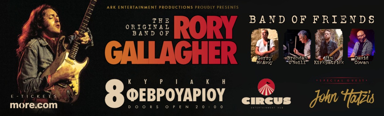 Την Κυριακή 8 Φεβρουαρίου οι Gerry McAvoy΄s Band Of Friends επιστρέφουν στην Λάρισα και στο Circus για να μας προσφέρουν μια συναυλία αφιέρωμα στον Rory Gallgher!!!