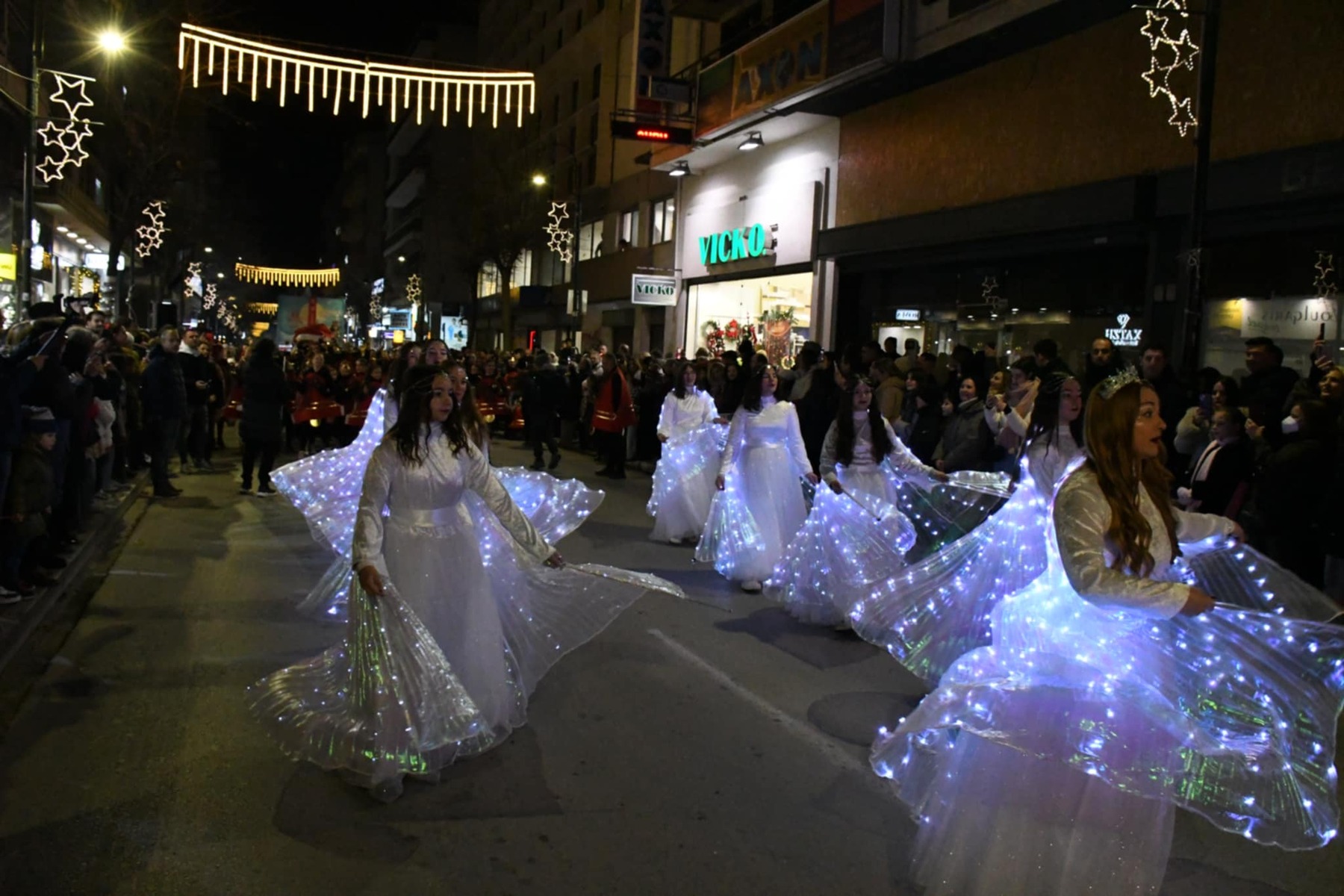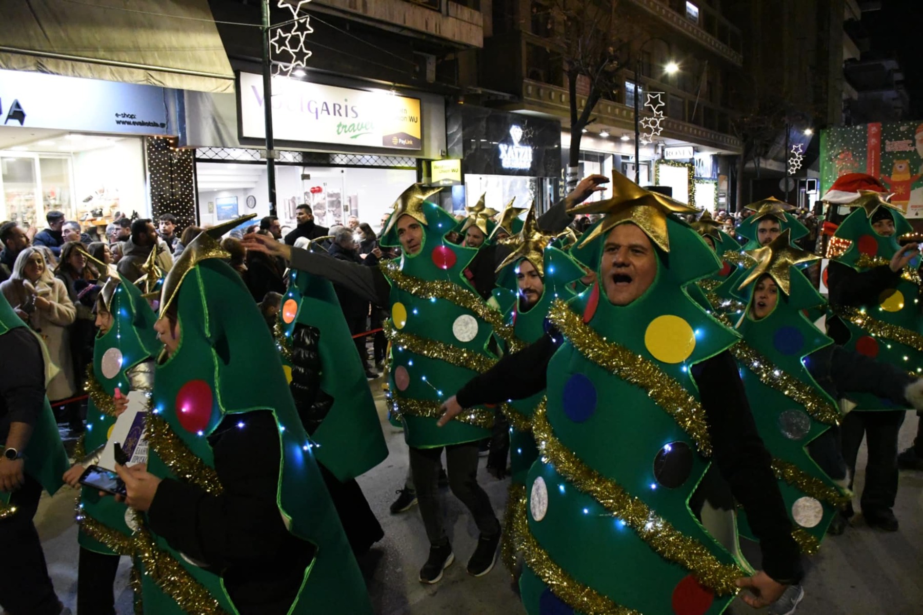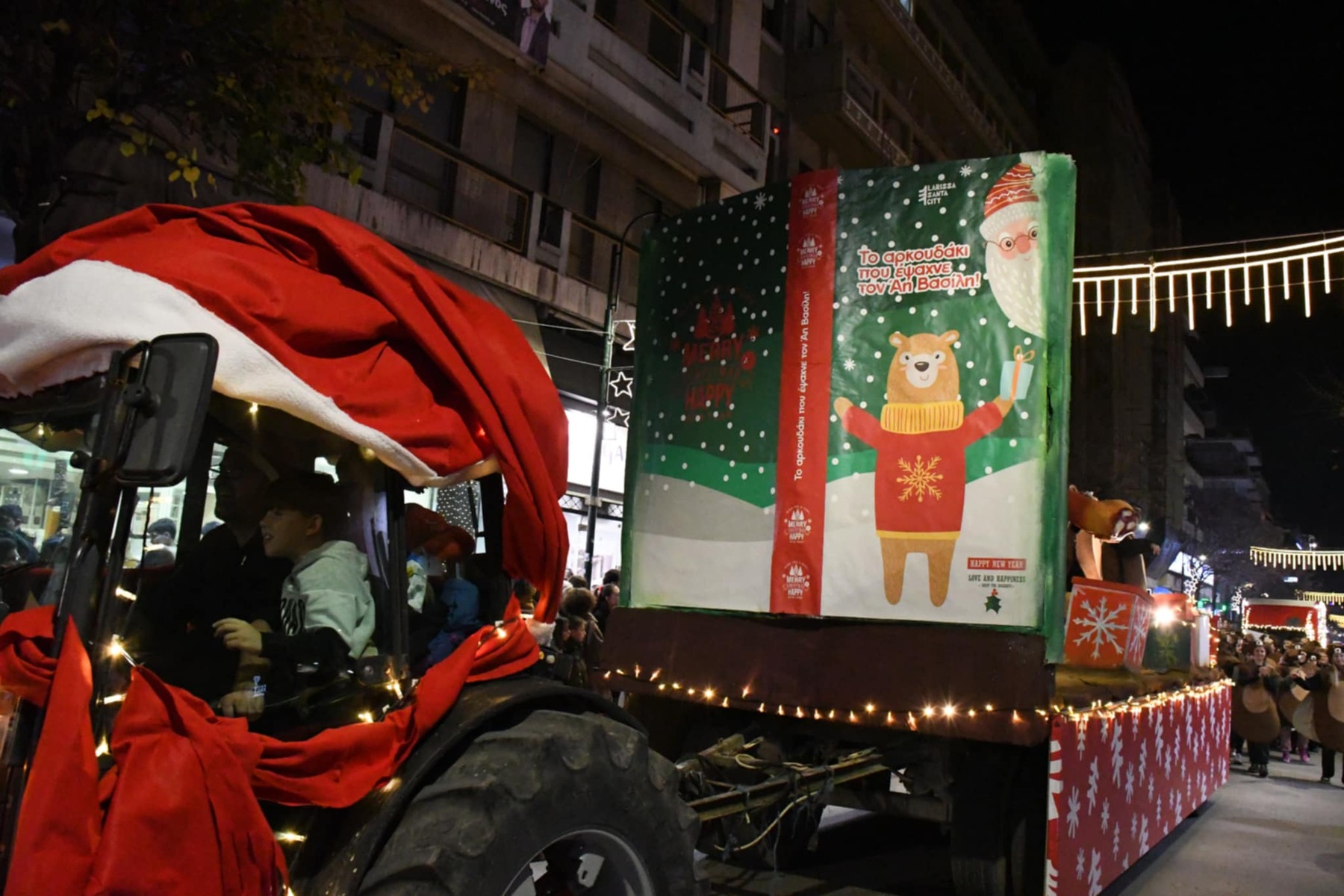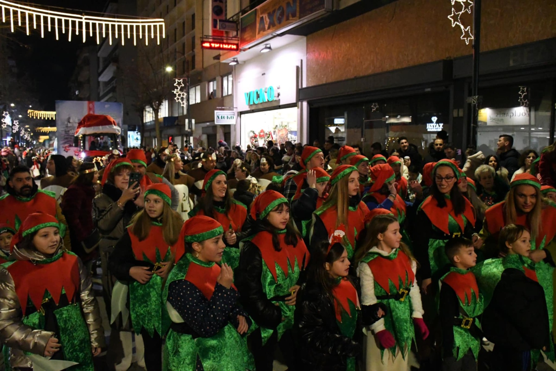 Περισσότεροι από 1.500 συμμετέχοντες, 12 εντυπωσιακά άρματα και δεκάδες φορείς, σύλλογοι και ομάδες πολιτών μετέτρεψαν τους δρόμους της πόλης σε ένα ζωντανό χριστουγεννιάτικο σκηνικό, υπό την παρουσίαση του Γρηγόρη Αρναούτογλου με την βοήθεια του Παναγή Τζωρτζάτου.