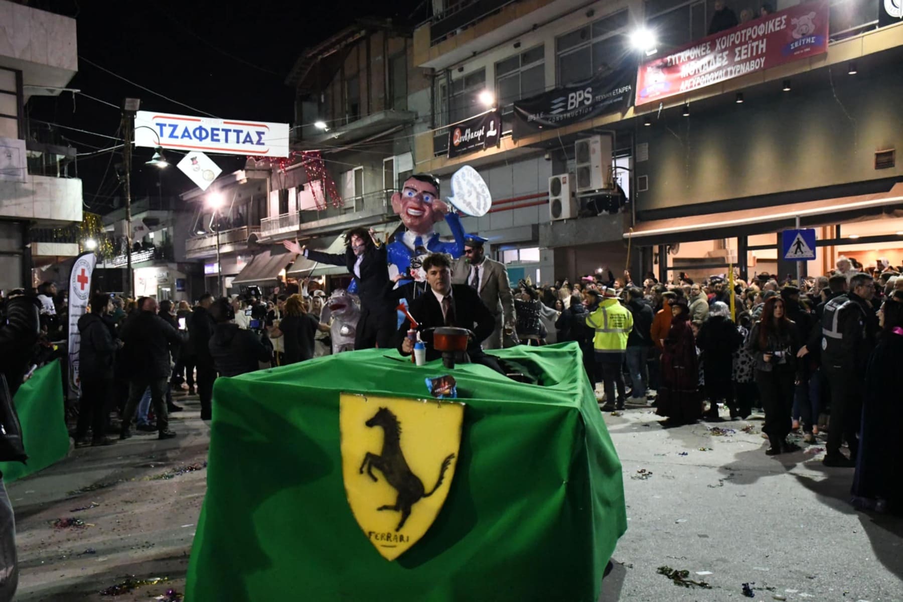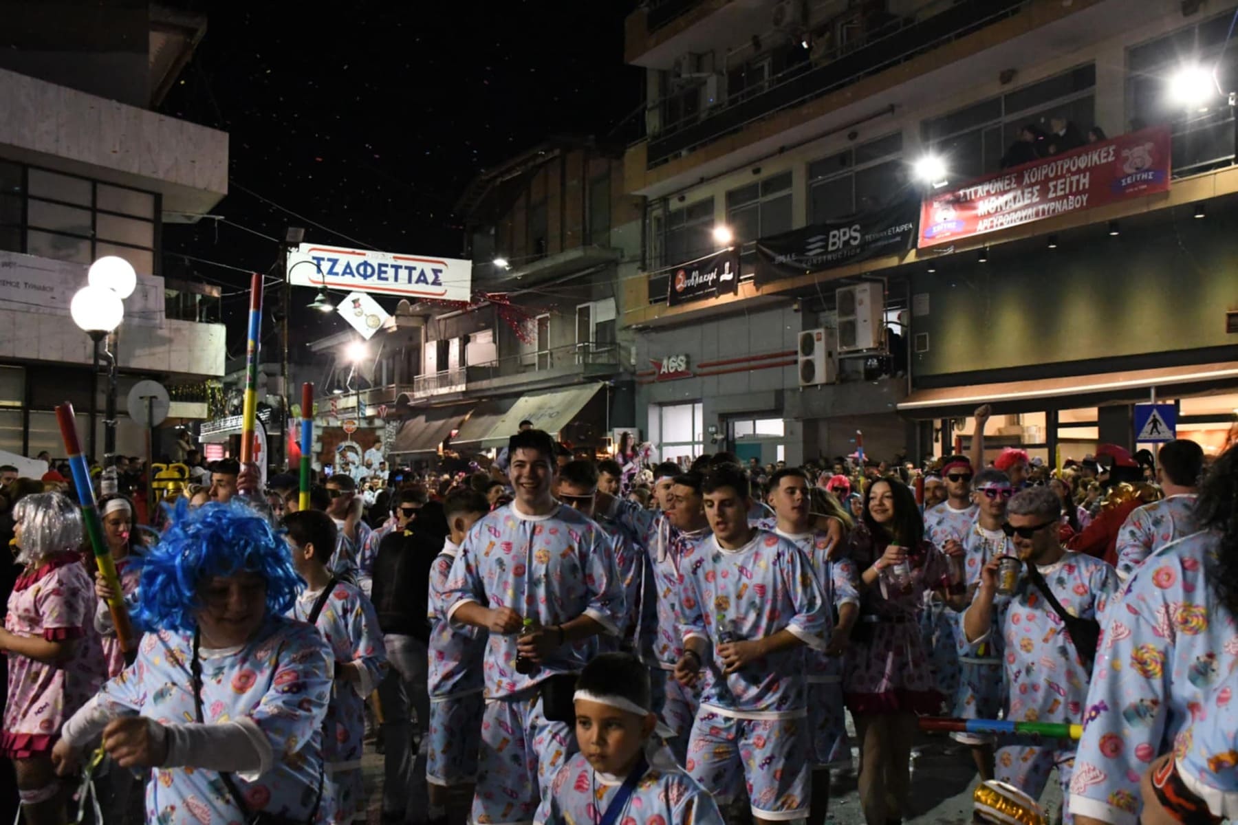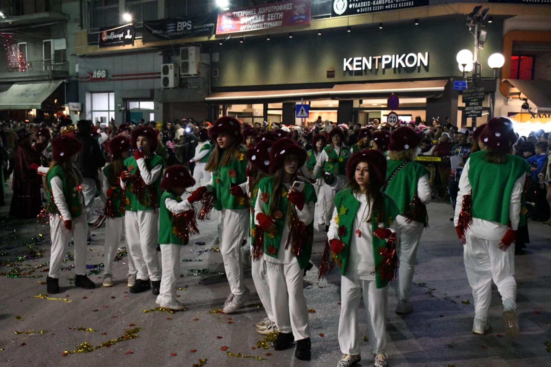 Οι καρναβαλιστές και ο κόσμος είχαν συρρεύσει από νωρίς το απόγευμα της Κυριακής στην Θεσσαλική κωμόπολη και με το που έπεσε το φως της ημέρας τα άρματα έκαναν την εμφάνισή τους, πάντα με τις κατάλληλες… διονυσιακές νότες.
