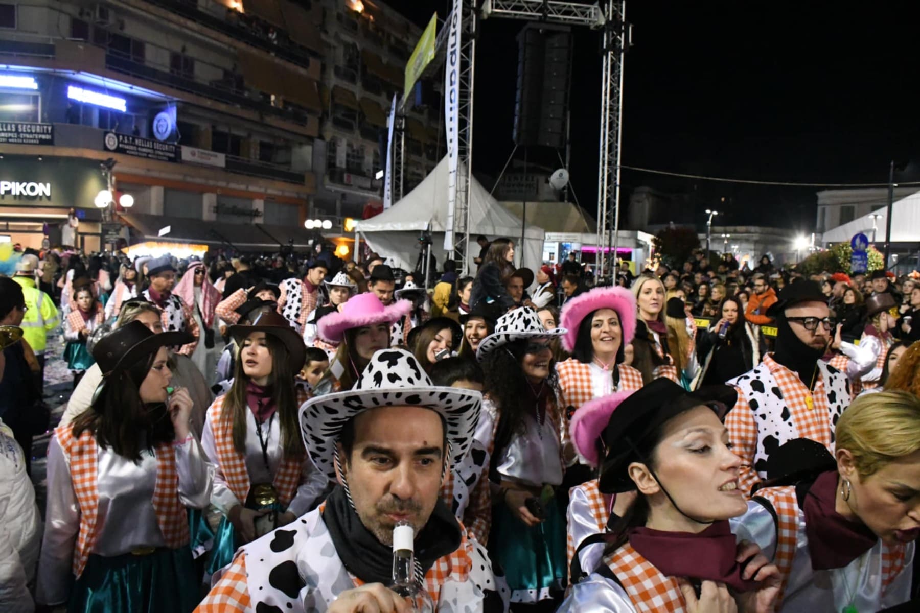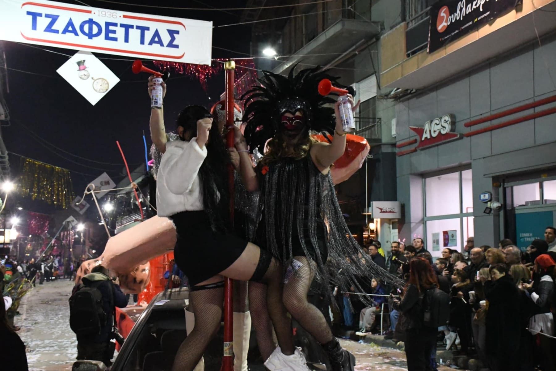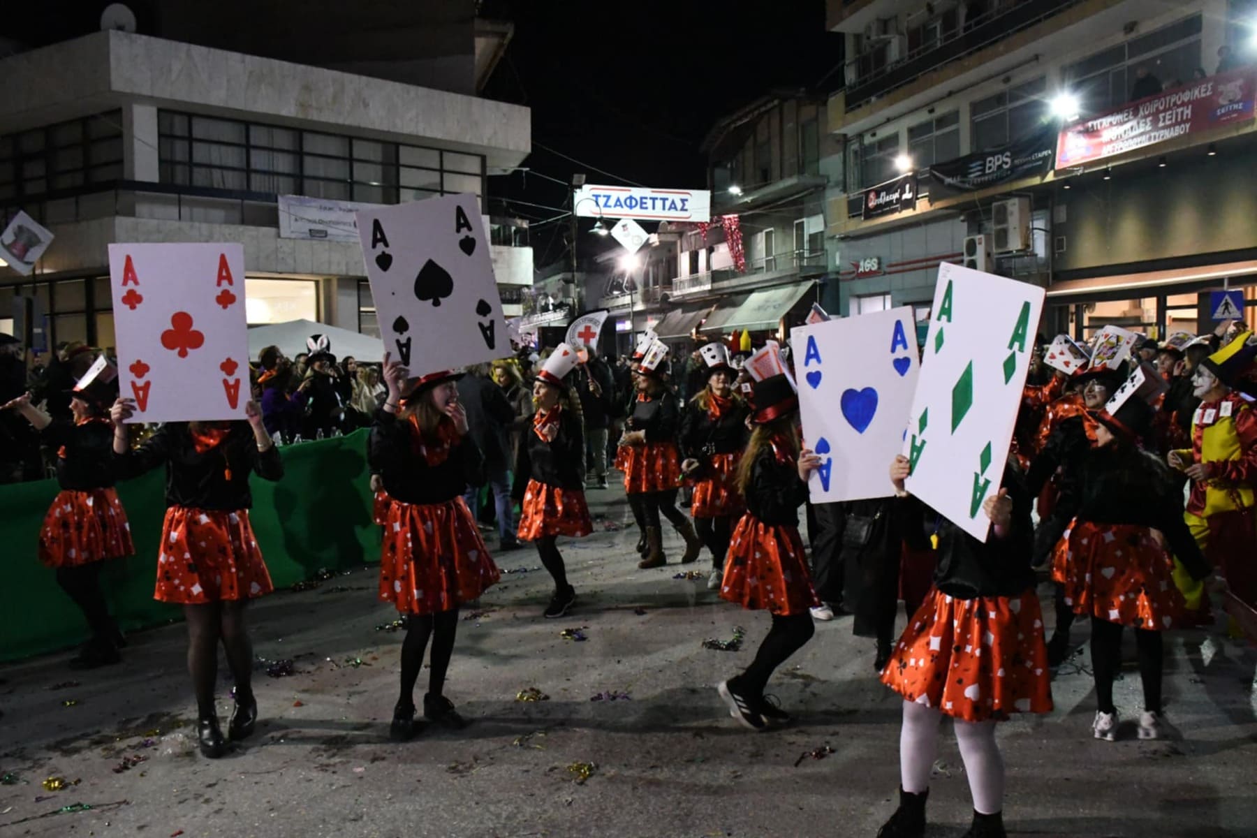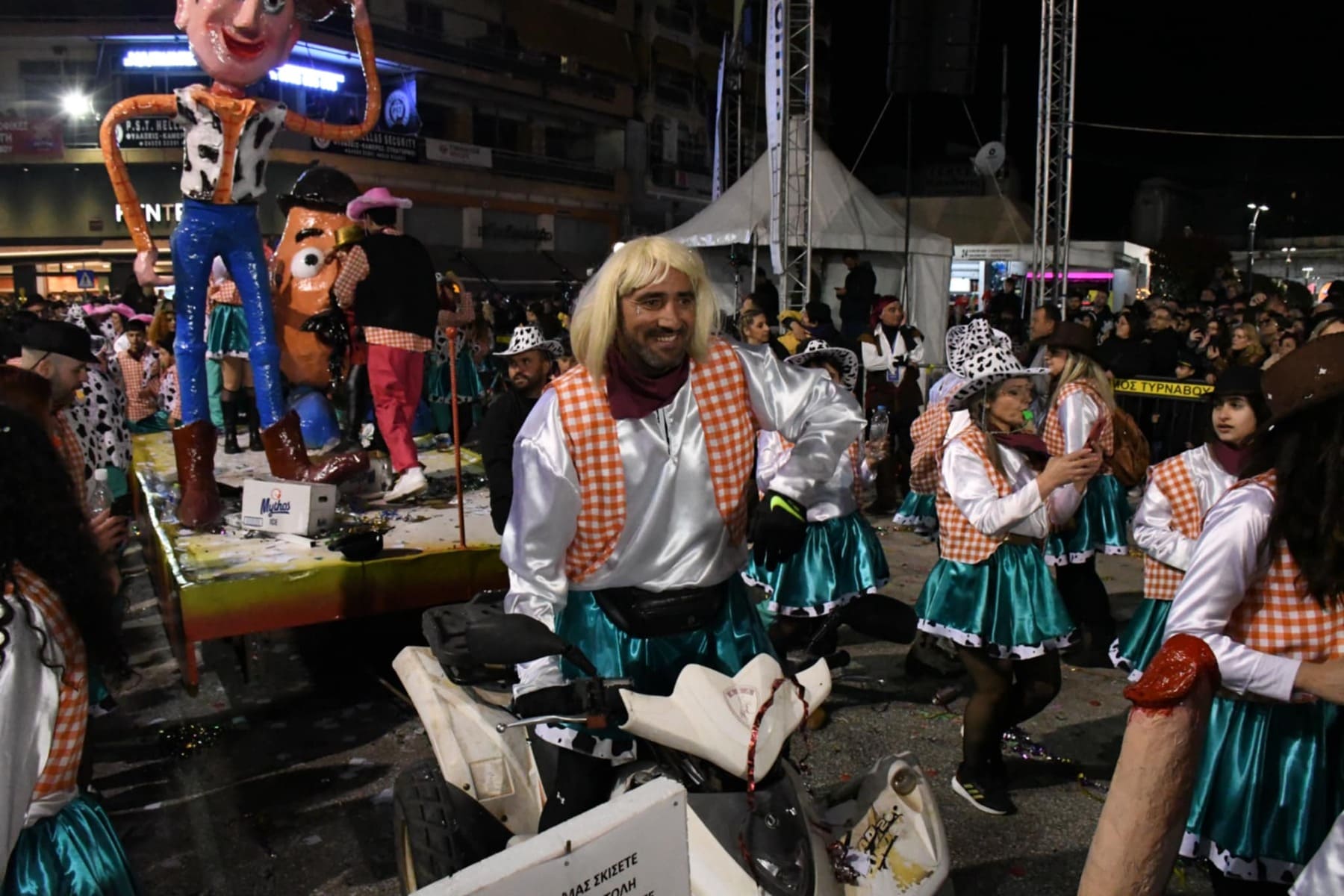 Οι καρναβαλιστές και ο κόσμος είχαν συρρεύσει από νωρίς το απόγευμα της Κυριακής στην Θεσσαλική κωμόπολη και με το που έπεσε το φως της ημέρας τα άρματα έκαναν την εμφάνισή τους, πάντα με τις κατάλληλες… διονυσιακές νότες.