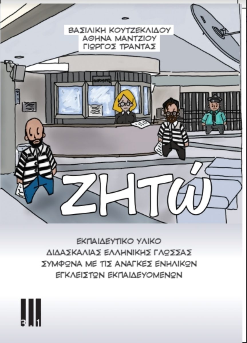 Πρόκειται για τον πρώτο οδηγό διδασκαλίας ελληνικών για εκπαιδευόμενους που κρατούνται σε Σωφρονιστικά Καταστήματα. Το βιβλίο είναι δομημένο με βάση τις επικοινωνιακές ανάγκες τους, δηλαδή τις γραπτές (αιτήσεις, υπεύθυνες δηλώσεις, εξουσιοδοτήσεις) και τις προφορικές (διαλόγους, ακροάσεις) επικοινωνίες με υπηρεσίες και φορείς μέσα κι έξω από τα Σωφρονιστικά καταστήματα. Παράλληλα, το βιβλίο πληροφορεί τον αναγνώστη για την διάταξη των υπηρεσιών της φυλακής και για την επικοινωνία μέσα σ’ αυτή.