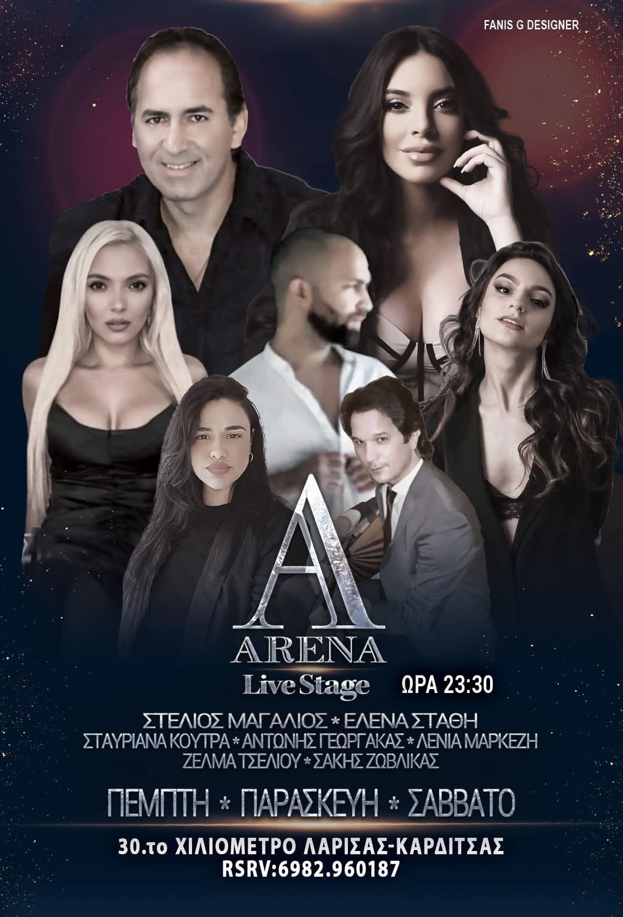 Επίσης στα μπουζούκια πέριξ της πόλης έχουμε φέτος μια νέα προσθήκη σε έναν χώρο που έχει γράψει ιστορία με άλλα ονόματα στο παρελθόν. Ο λόγος για το ARENA Live Stage στο 3ο χιλιόμετρο Λάρισας-Καρδίτσας με μεγάλο όνομα τον Στέλιο Μαγαλιό που είναι και ο ιδιοκτήτης. Το σχήμα επίσης θα απαρτίζεται από την Έλενα Στάθη, την Σταυριάνα Κούτρα, την Ζέλμα Τσέλιου, τον Αντώνη Γεωργάκα και την Λένια Μαρκέζη.