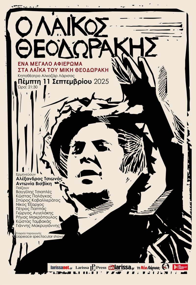 Μία συναυλία – σταθμός για τη φετινή σεζόν θα λάβει χώρα στη Λάρισα, αφιερωμένη στον μεγάλο Μίκη Θεοδωράκη, απόψε Πέμπτη 11 Σεπτεμβρίου, στο Κηποθέατρο Αλκαζάρ, στις 21.30 το βράδυ