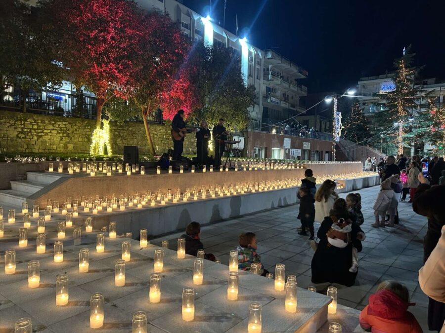 Ο προσφάτως ανακαινισμένος δημόσιος χώρος γέμισε από νωρίς με πλήθος κόσμου, μικρούς και μεγάλους, που κατέκλυσαν την πλατεία για να ζήσουν μια διαφορετική χειμωνιάτικη εμπειρία. Χίλια κεριά τοποθετημένα σε όλη την έκταση της πλατείας δημιούργησαν ένα μοναδικό φωτεινό σκηνικό, μεταμορφώνοντας το κέντρο των Φαρσάλων σε σημείο ηρεμίας, συγκίνησης και γιορτινής κατάνυξης.