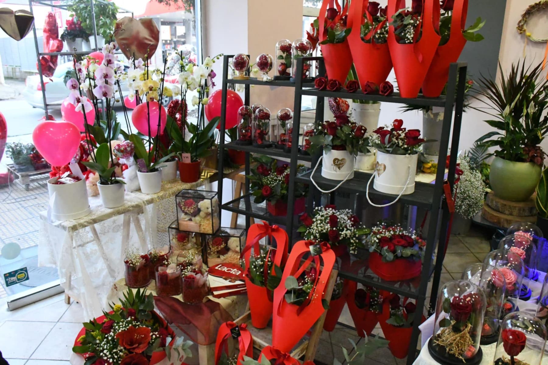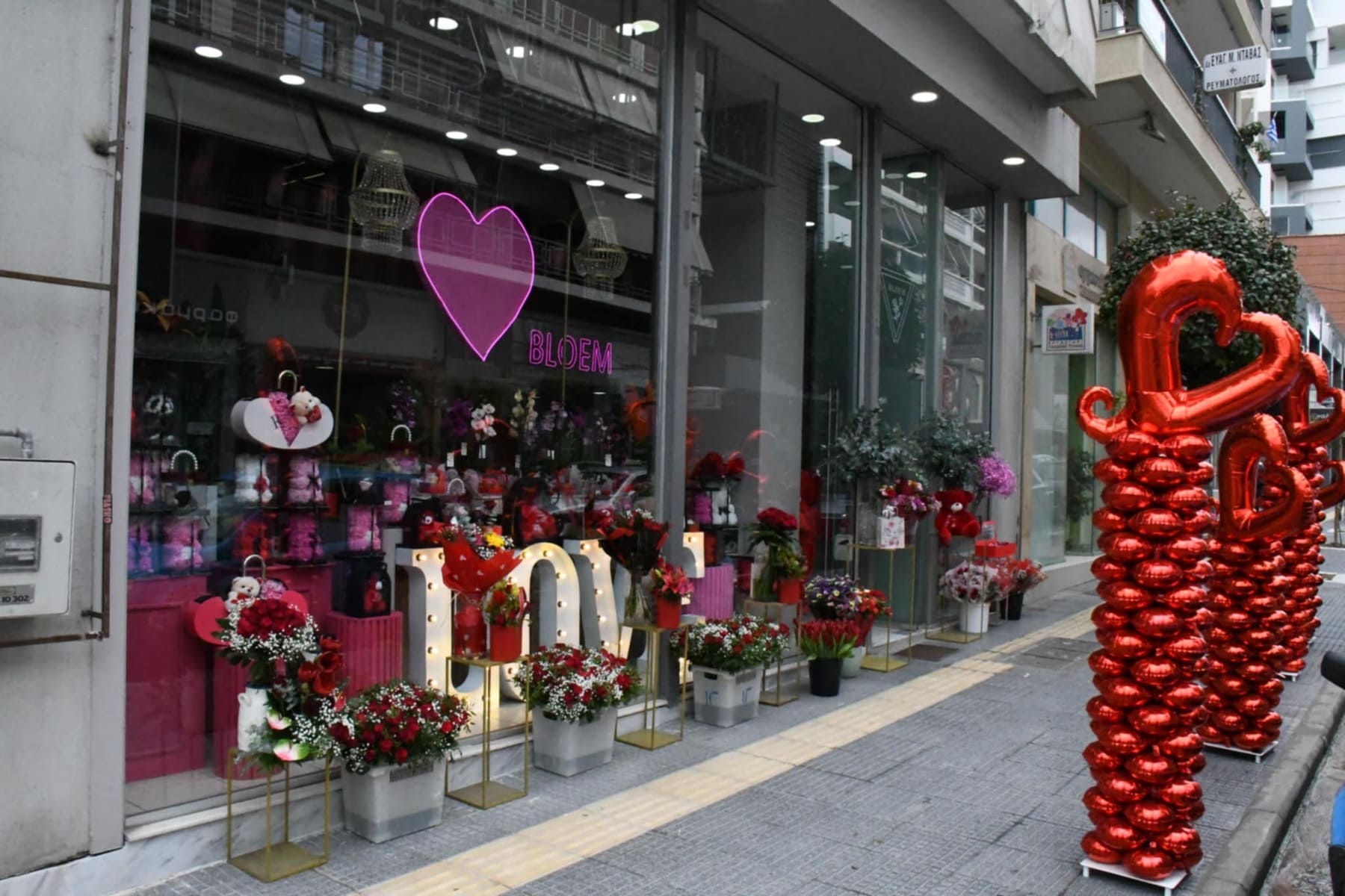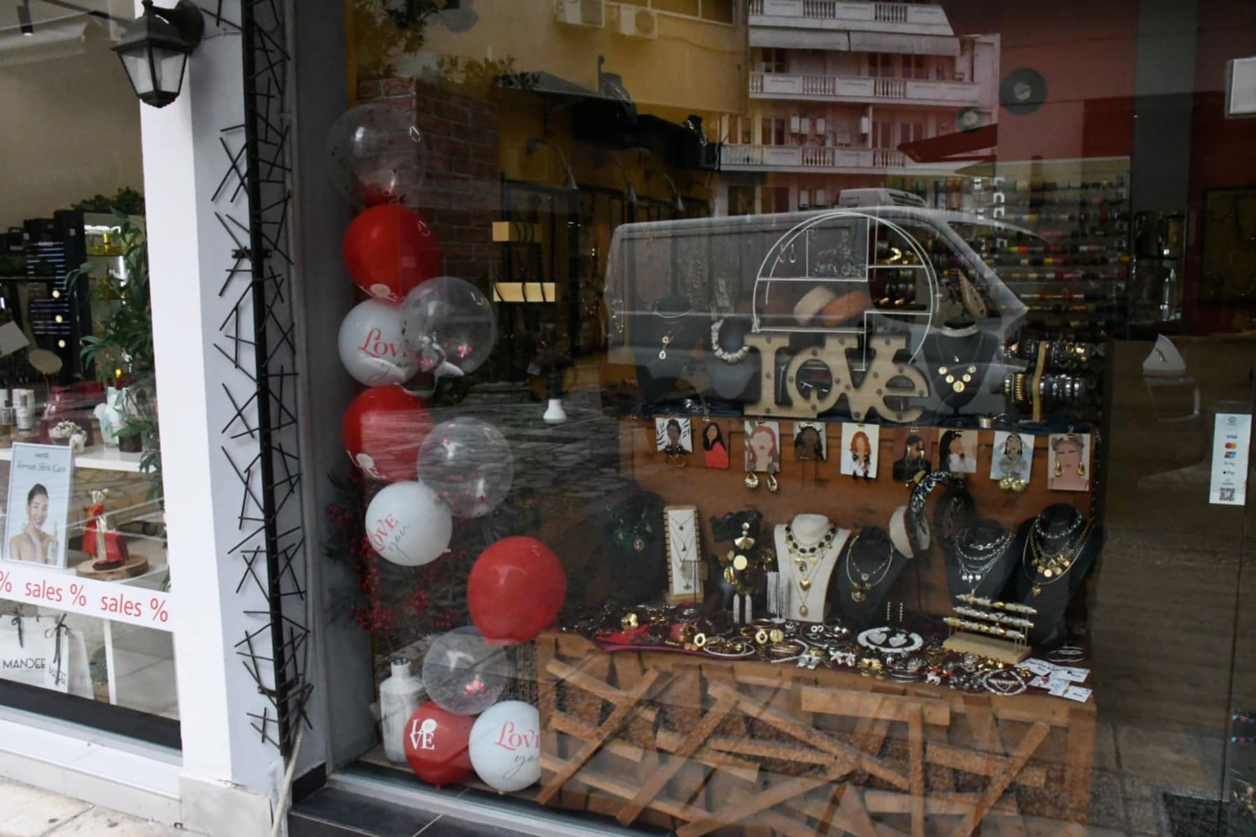 Εμπορικά καταστήματα, ανθοπωλεία, ζαxαροπλαστεία, φούρνοι, καφετέριες, βιβλιοπωλεία κλπ “ντύθηκαν” και φέτος στα… κοκκινορόζ με τα μπαλόνια σε σχήμα καρδιάς να κάνουν, κλασσικά, την διαφορά εν όψει της σημερινής ημέρας των ερωτευμένων. Η έντονη κινητικότητα πάντως ξεκίνησε από χθες, ενώ μέχρι το βράδυ δε πρόκειται να μείνει ούτε… ροδοπέταλο, όπως μας είπε ιδιοκτήτρια ανθοπωλείου.