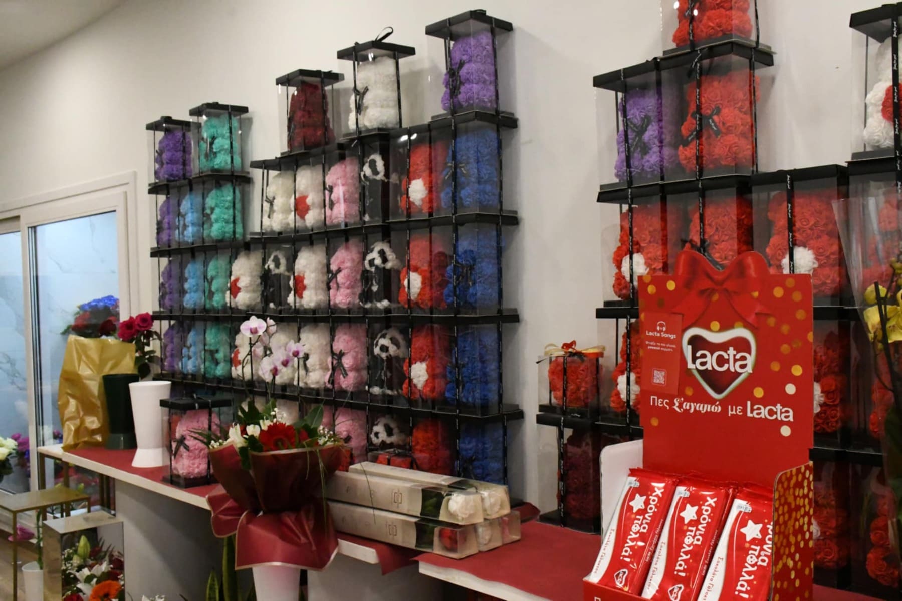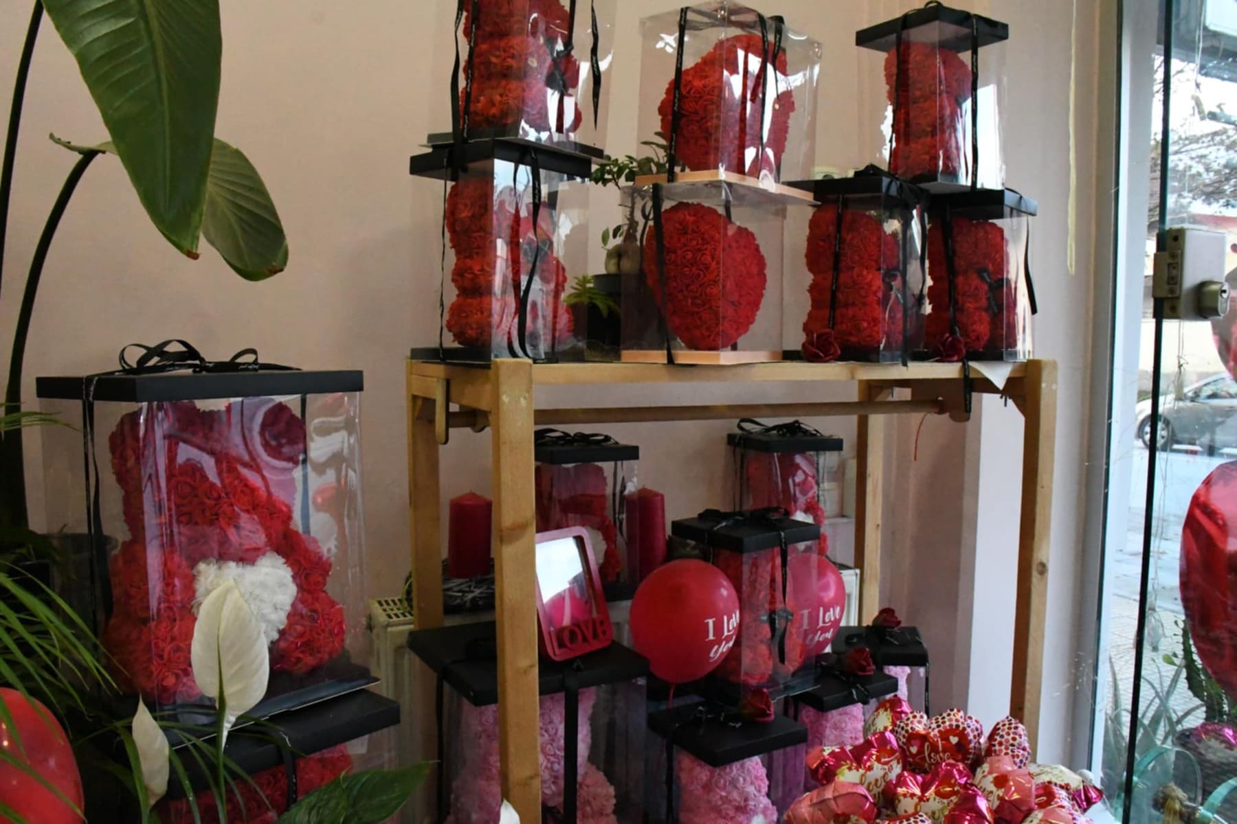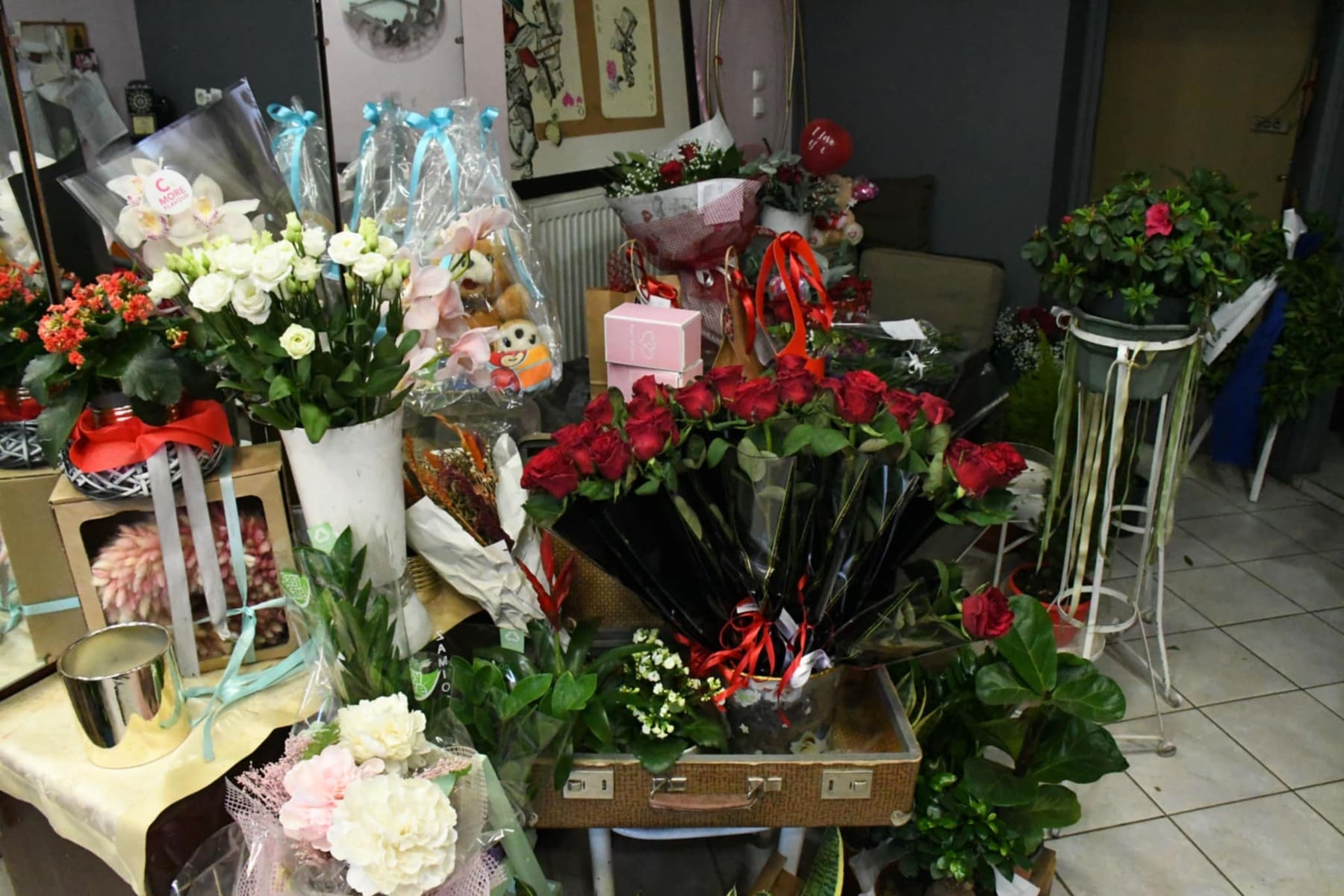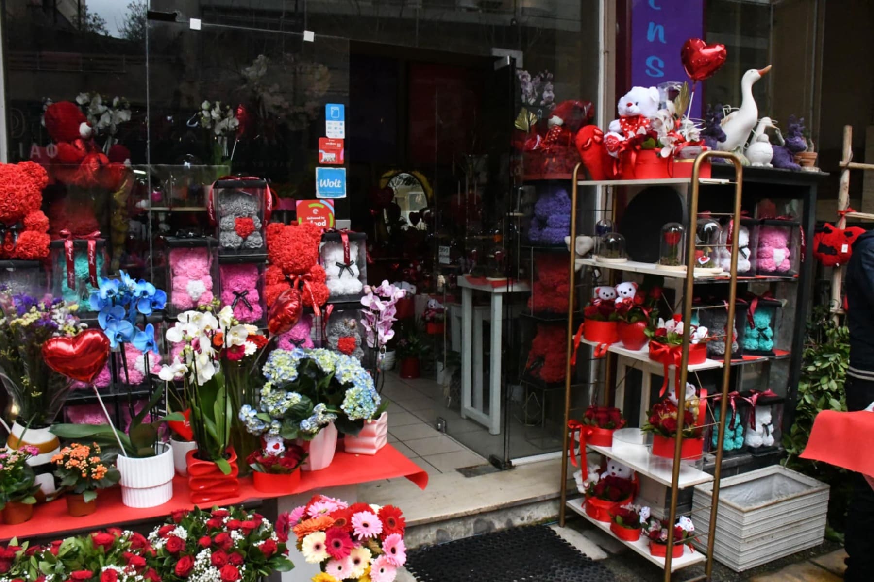 Εμπορικά καταστήματα, ανθοπωλεία, ζαxαροπλαστεία, φούρνοι, καφετέριες, βιβλιοπωλεία κλπ “ντύθηκαν” και φέτος στα… κοκκινορόζ με τα μπαλόνια σε σχήμα καρδιάς να κάνουν, κλασσικά, την διαφορά εν όψει της σημερινής ημέρας των ερωτευμένων. Η έντονη κινητικότητα πάντως ξεκίνησε από χθες, ενώ μέχρι το βράδυ δε πρόκειται να μείνει ούτε… ροδοπέταλο, όπως μας είπε ιδιοκτήτρια ανθοπωλείου.