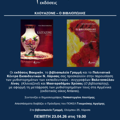 Με αφορμή τη μετάφραση των μυθιστορημάτων τους στα Αρμένικα (εκδ. οίκος «Antares»), οι συγγραφείς – εκπαιδευτικοί Χρύσα Μαστοροδήμου και Λίνα