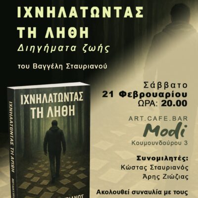 Παρουσίαση του βιβλίου «Ιχνηλατώντας τη Λήθη» πραγματοποιεί ο Σταυριανός Βαγγέλης στη Λάρισα και το Modi Art Cafe Bar, το Σάββατο