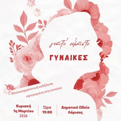 Μουσικοχορευτική εκδήλωση, αφιερωμένη στις γυναίκες με τίτλο “Γιατί είμαστε ΓΥΝΑΙΚΕΣ“ θα πραγματοποιηθεί την Κυριακή 1η Μαρτίου 2026, στις 19:00, στο
