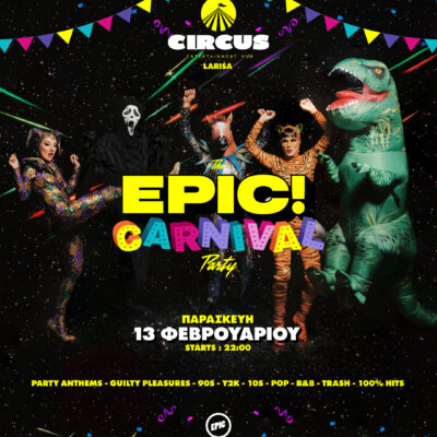 Παρασκευή 13/2 – Circus Entertainment Hub (Ερυθρού Σταυρού 4 – Λάρισα) Το EPIC Party επιστρέφει για μια ΕΚΡΗΚΤΙΚΗ ΚΑΡΝΑΒΑΛΙΚΗ βραδιά