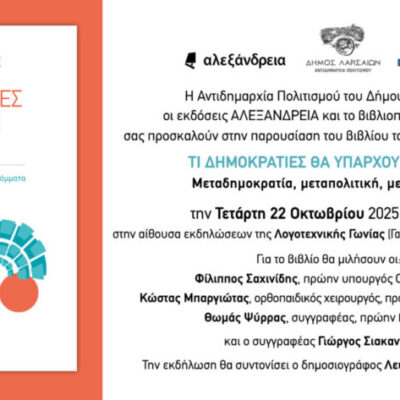 Το βιβλίο του Γιώργου Σιακαντάρη με τίτλο “Τι Δημοκρατίες θα υπάρχουν το 2050; Μεταδημοκρατία, μεταπολιτική, μετακόμματα”, παρουσιάζεται την Τετάρτη 22