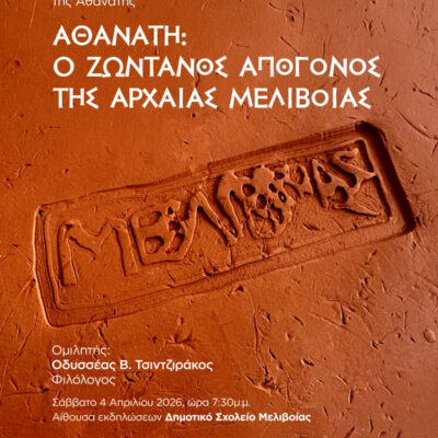 Την πολιτιστική και ιστορική διαδρομή της Μελιβοίας θα παρουσιάσει σε ειδική εκδήλωση ο φιλόλογος Οδυσσέας Τσιντζιράκος το Σάββατο του Λαζάρου