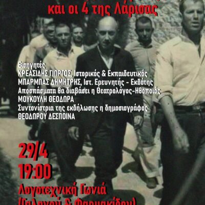 “Οι 200 της Καισαριανής και η συνεισφορά σπονδής της Λάρισας” – Εκδήλωση στην Λογοτεχνική Γωνιά