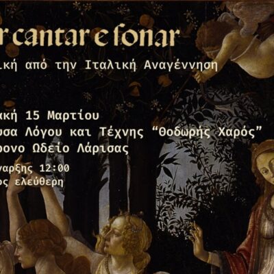 Το Σύγχρονο Ωδείο Λάρισας φιλοξενεί την Ευθαλία Λαζαρίδου (αναγεννησιακό λαούτο) και Δήμητρα Πιλαφτσή (τραγούδι) την Κυριακή 15 Μαρτίου και ώρα 12.00 μ.